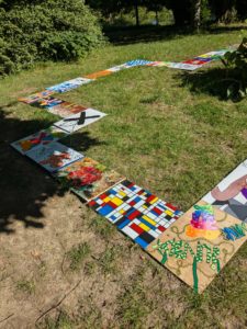Nous avons choisi de créer un jeu de l’oie artistique. Chaque classe a créé 6 cases du jeu de l’oie en s’inspirant des artistes rencontrés et étudiés durant l’année scolaire.