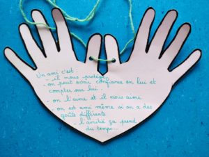 Toutes les classes ont réfléchi à la question ” Qu’est ce qu’un ami?”, Comment le choisit on? Est ce qu’on doit tout accepter d’un ami?….